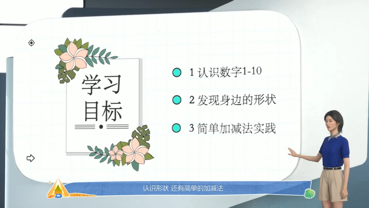 这节课,我们将一起{学:xue2}{习:xi2}{数:shu3}{数:shu4},认识{形:xing2}状,还有简单的加减法。大家准备好了{吗:ma1}?